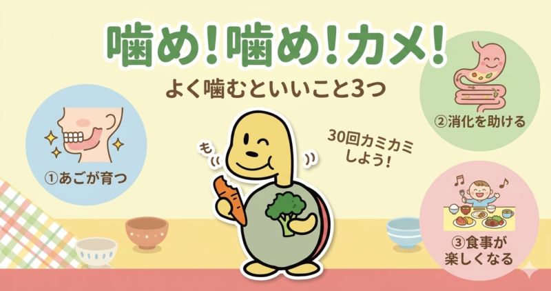 “噛め、かめ、カメ”に込めた想い -よく噛む子の育て方 – 知っ得情報
